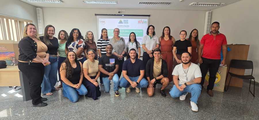A formação foi conduzida pelo *Núcleo de Tecnologias Educacionais Municipal (NTM)* e organizada por componente curricular e turno, proporcionando um espaço estruturado para apresentação e debate sobre a implementação da BNCC Computação no currículo da rede municipal. O documento complementa a Base Nacional Comum Curricular e orienta a inclusão da Computação na Educação Básica, estimulando o desenvolvimento de competências relacionadas ao uso crítico, ético e responsável das tecnologias digitais.